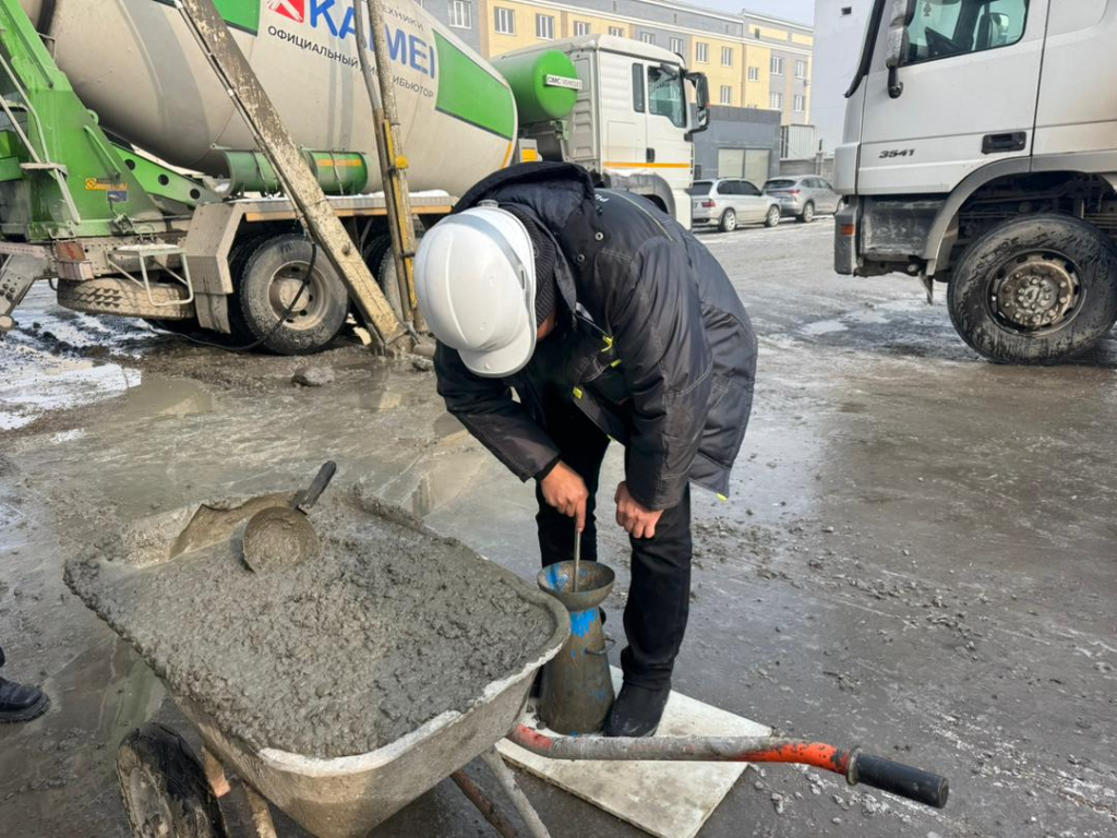 Текшерүүнүн жүрүшүндө адистер технологиялык процесс жана жабдуулардын техникалык абалы менен таанышып, ошондой эле лабораториялык сыноолор үчүн бетондон куб формасындагы үлгүлөрдү алды.