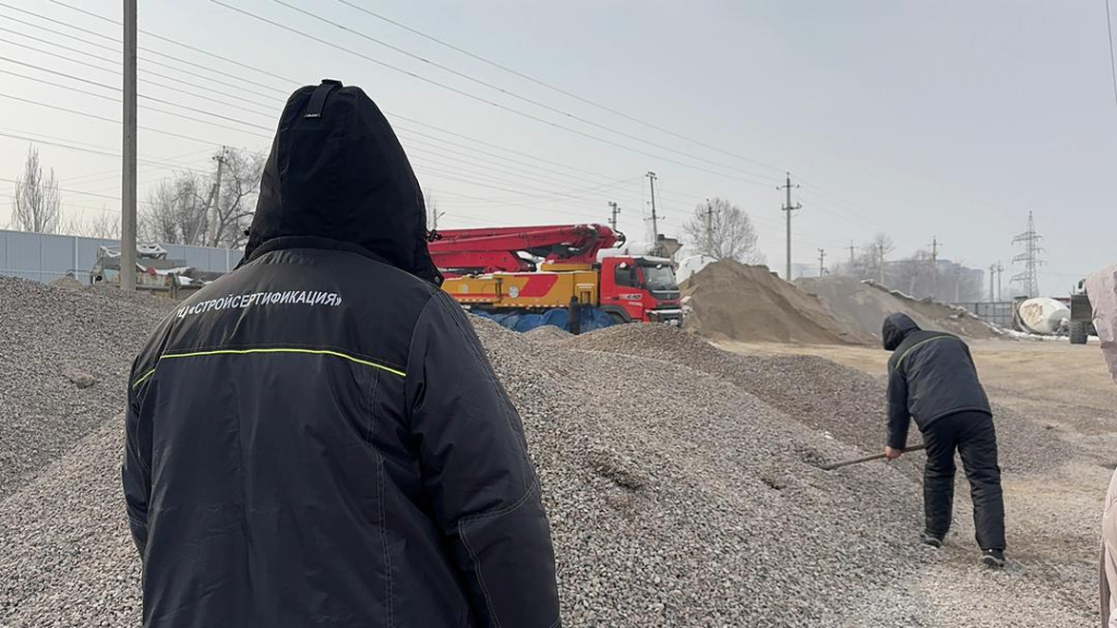 Кыргыз Республикасынын Курулуш министрлигине караштуу Курулушта сертификаттоонун республикалык борборунун кызматкерлери Бишкек шаарындагы Исакеев көчөсү 1/5 дарегинде жайгашкан бетон аралашмаларын чыгаруучу заводду текшерди.