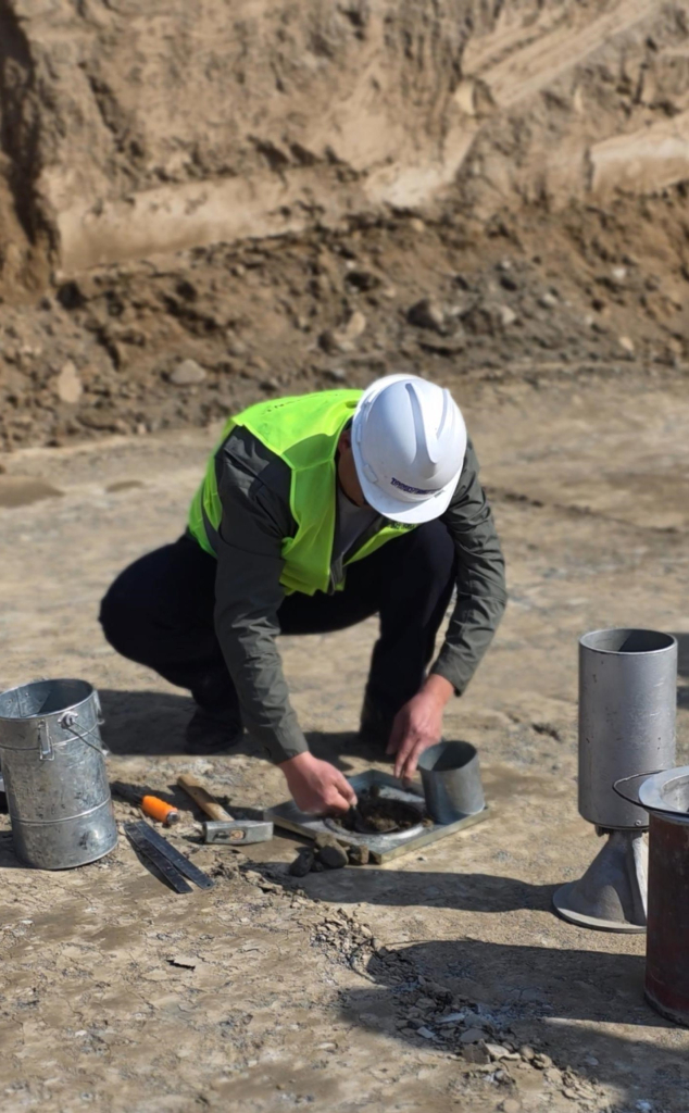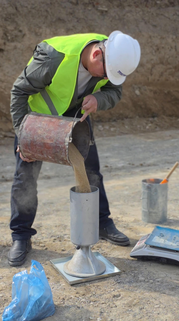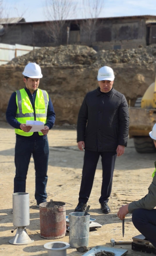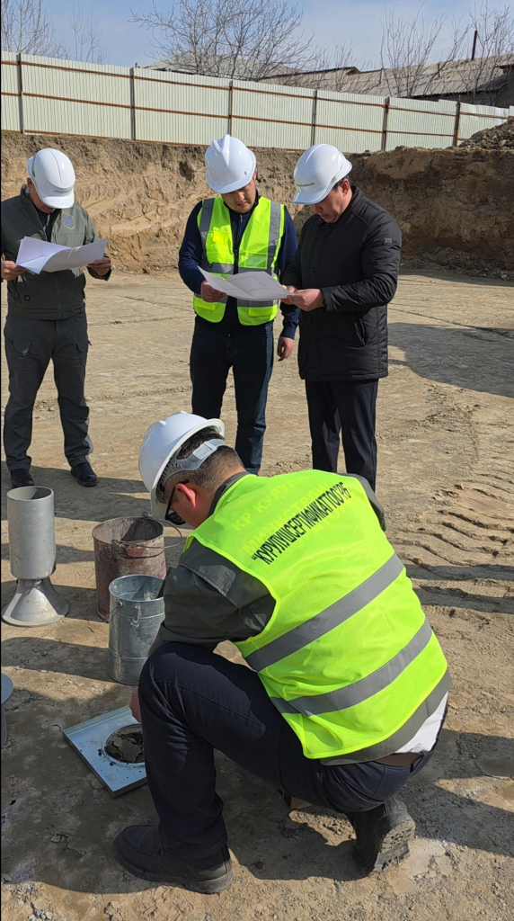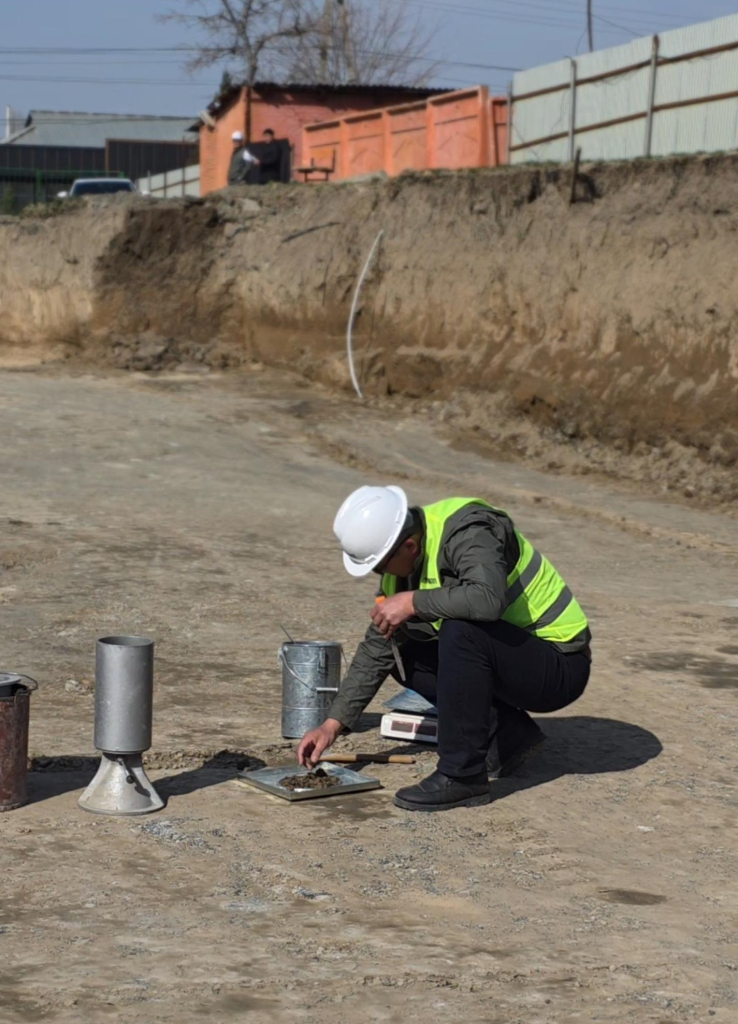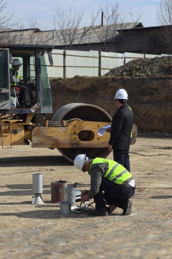 Текшерүү иштери - топурактын тыгыздыгынын сапатын жана анын белгиленген ченемдик талаптарга шайкештигин аныктоо максатында өткөрүлүүдө.