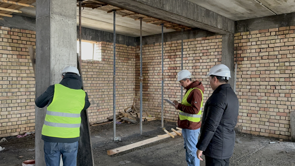 Кыргыз Республикасынын Курулуш, архитектура жана турак жай-коммуналдык чарба министрлигине караштуу Курулушта сертификаттоонун республикалык борборунун Түштүк аймактык башкармалыгынын сыноо лабораториясы тарабынан Ош облусунун Кара-Суу шаарындагы Рахимов көчөсүндө курулуп жаткан 3-4 кабаттуу турак үйлөрдөгү монолиттик темир-бетон конструкцияларынын бекемдиги текшерилди.